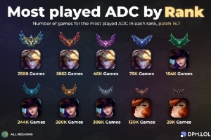 体育资讯4月17日讯 数据网站DPM.LOL统计,LOL各段位出场率最高的下路AD英雄:伊泽瑞尔、女警、女枪。