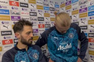体育资讯04月20日讯 英超第33轮,曼城2-1战胜阿森纳,赛后曼城进球功臣哈兰德和即将离队的B席一起接受了天空体育的采访。